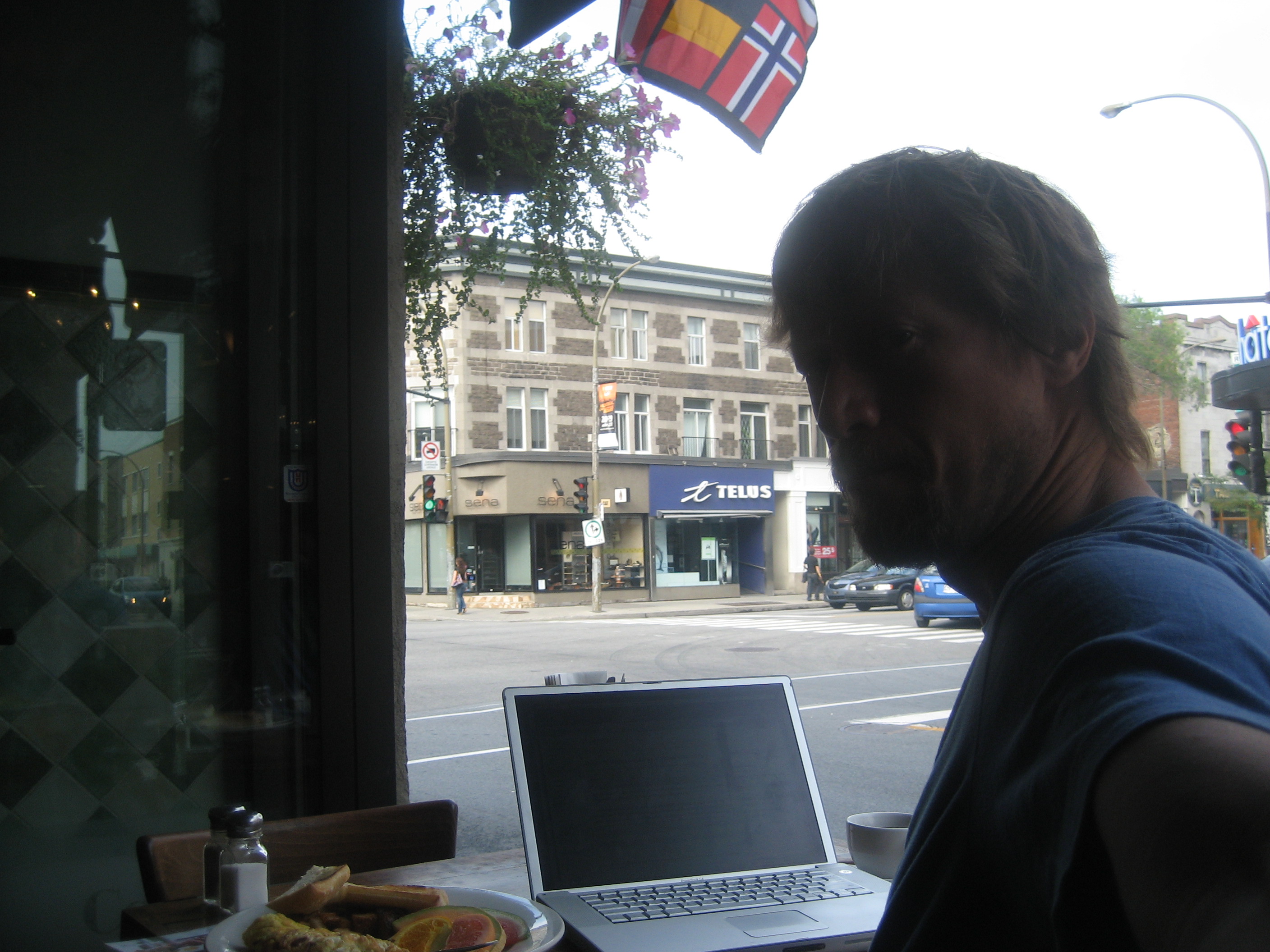 Yesterday I just spent exploring the city and seeing what there was to see. It was hot as a mofo, so I wasn’t in the mood to take too many pictures. Sorry about that. Last night I did a self-guided tour to the city’s Belgian beer bars / micro-breweries. I had a chat last night with the woman who writes for montreal.about.com, so she’s pretty much in the know on everything. Her friend cracked me up at one point. He has a hearing condition that makes it impossible for him to hear anyone talk in a bar if there’s live music. “I can’t hear a goddamn thing. So what do I do? Leave? No. I dance.” Ha! So many ways to deal with our problems, and I think he nailed it.