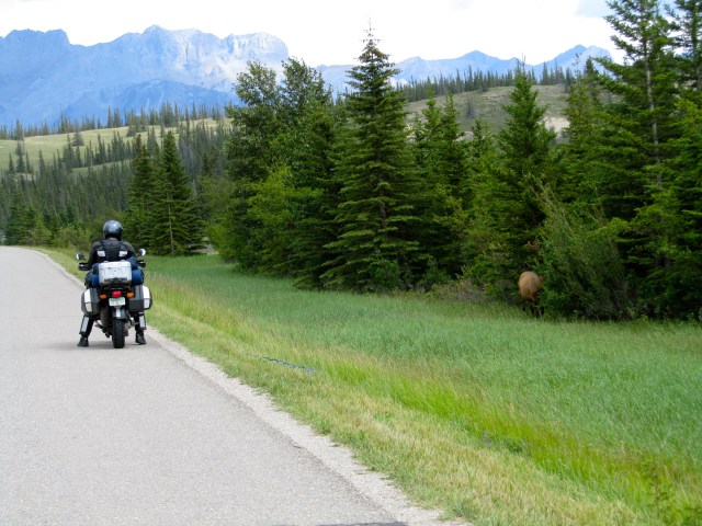 You know you’re out there, when in one day, you see bighorn sheep, goats, bears, and elk. Add the bald eagle and numerous deer, and we’re doing well so far. Later in the day, we saw another bear (black bear) by the side of the road. We stopped to get a photo, but he looked at us, moved back about 50 feet, stood up to at least 5 or 6 feet tall and rambled off into the woods. It was awesome. From where we were, he looked really cute on his hind legs. I wanted to bring him home and snuggle next to the fire place. Probably not a good idea… Don’t worry bear experts, I’m kidding.