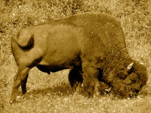 Happily full of sugar and more sugar we head outand start to really experience the wildlife.  Elk, bears, deer, bison, all on the side of the road.  As it turns out, I’m more of a danger to myself than these wild animals are.  We pulled over to get a photo of the first elk we saw, and as I was putting my kickstand down on a hill, in gravel, while trying to keep my eye on the elk, and down came my bike.  Off I rolled into the gulley.  Fortunately, I nailed the landing.  Unfortunately, Brad didn’t get the roll on film, but he was nice enough to stop midway over to me to take a picture of my folly.  It took both of us to drag the bike across the ground and get it upright (it was upside down) by using the hill to our advantage, sweating, swearing, and laughing at the same time.  We looked the bike over and it appeared to be absolutely fine except for scratches on my cases (trashed my New Belgium sticker!), some dirt in the engine guard and minor repair to the hand guards.  Amazing since we had to drag all 700 pounds around in a circle. And those stupid elk didn’t stick around for a photo!  Bastards!