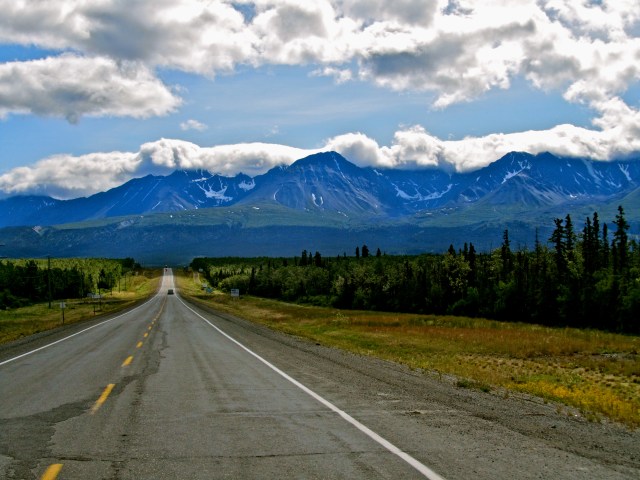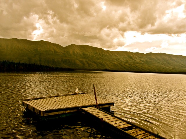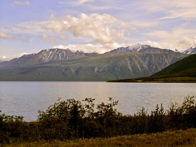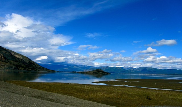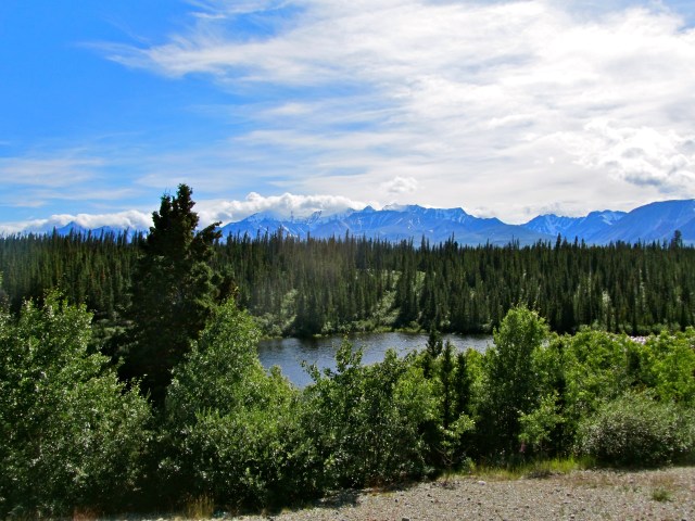 Epic. Today was beyond description, and may lame photographic skills cannot even begin to do justice to what we rode through today. Plus, it was hard to pull over to take photos since we were just riding that sweet, smooth groove all day. All of the mountains we’d seen before today were but little hills. I look back at how awed we were by the scenery of each previous day, and I think, aww, we were so young and naïve back then. Welcome to the Yukon. For real.