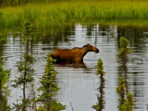 Our first mosse sighting. AWESOME. This is Millie the moose, and her little guy is just out of the shot.