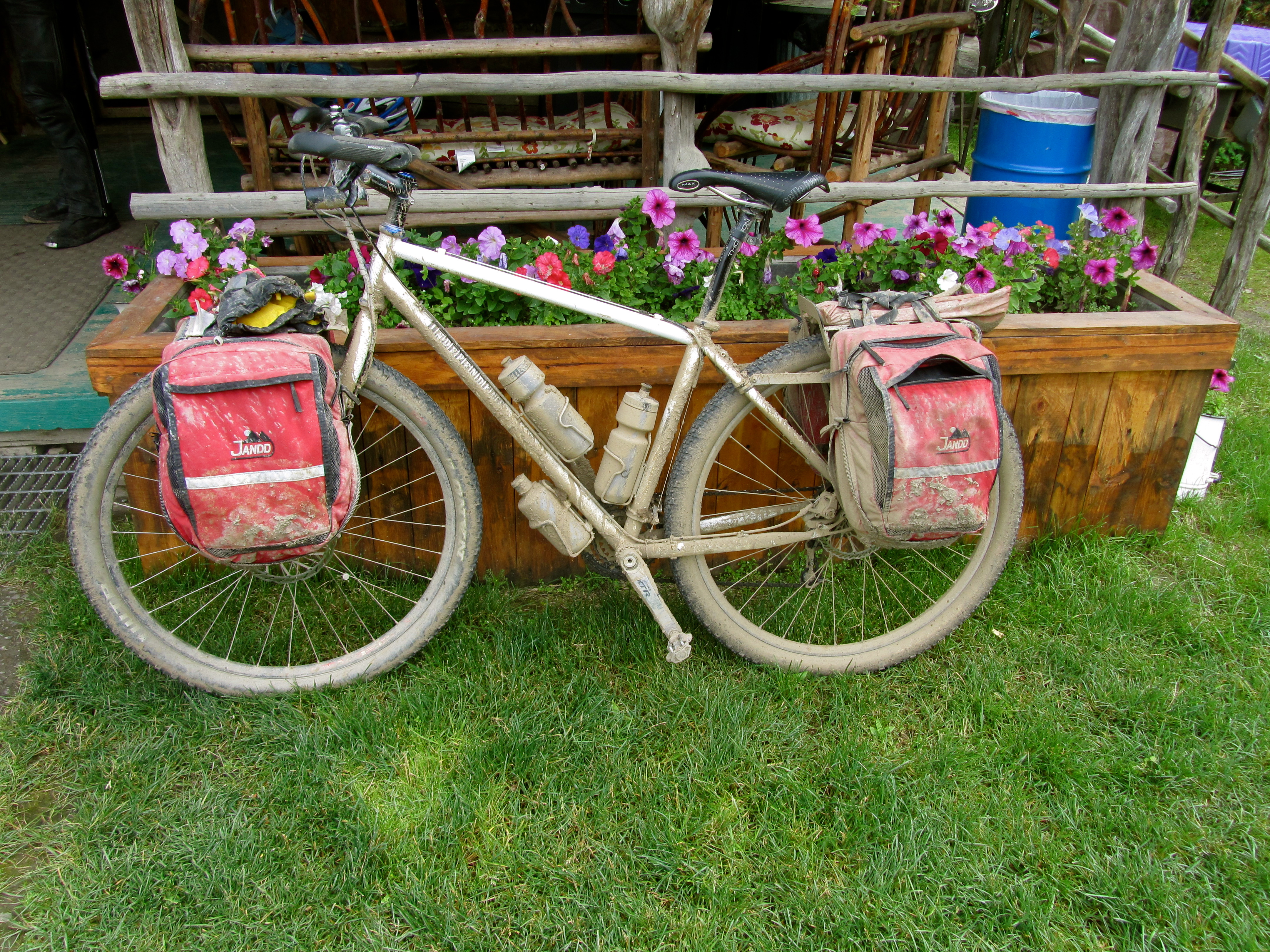I’m sure that other people have made it up there, and maybe the road would have cleared after the construction section, but there was no way of knowing. Our decision has been confirmed as the right one on several ocassions. We ran into some bicyclists on our way down in Joy, Alaska, and from looking at them and talking to them, the road’s gnarliness quotient did not go down further up the road. Then, the next day at the Harley / BMW dealership, we met a guy who just went up in a Harley – at 5 miles per hour. We told him we bailed, and he said, “Good. You guys are smart. I’m on a rental. I wouldn’t rent a bike to me.” We said, “yea, but doesn’t it get better further up?” He said, “Yea, and it gets worse! I didn’t realize that the mud has glacier sand in it – it’s way more slippery than your typical mud.” Brad said, “yea, I thought I was on snot.” You heard it here first. I was feeling pretty good about the decision again.