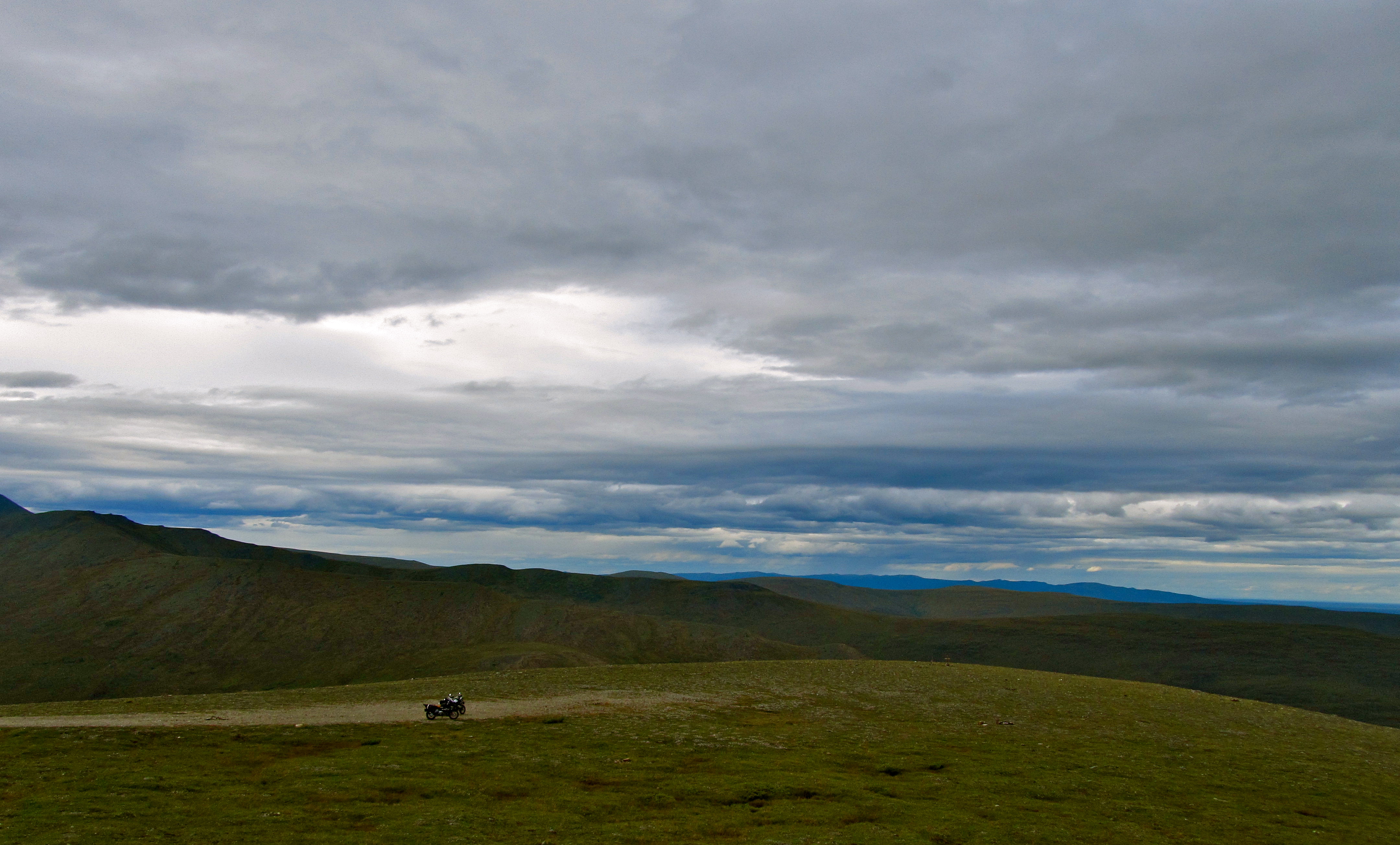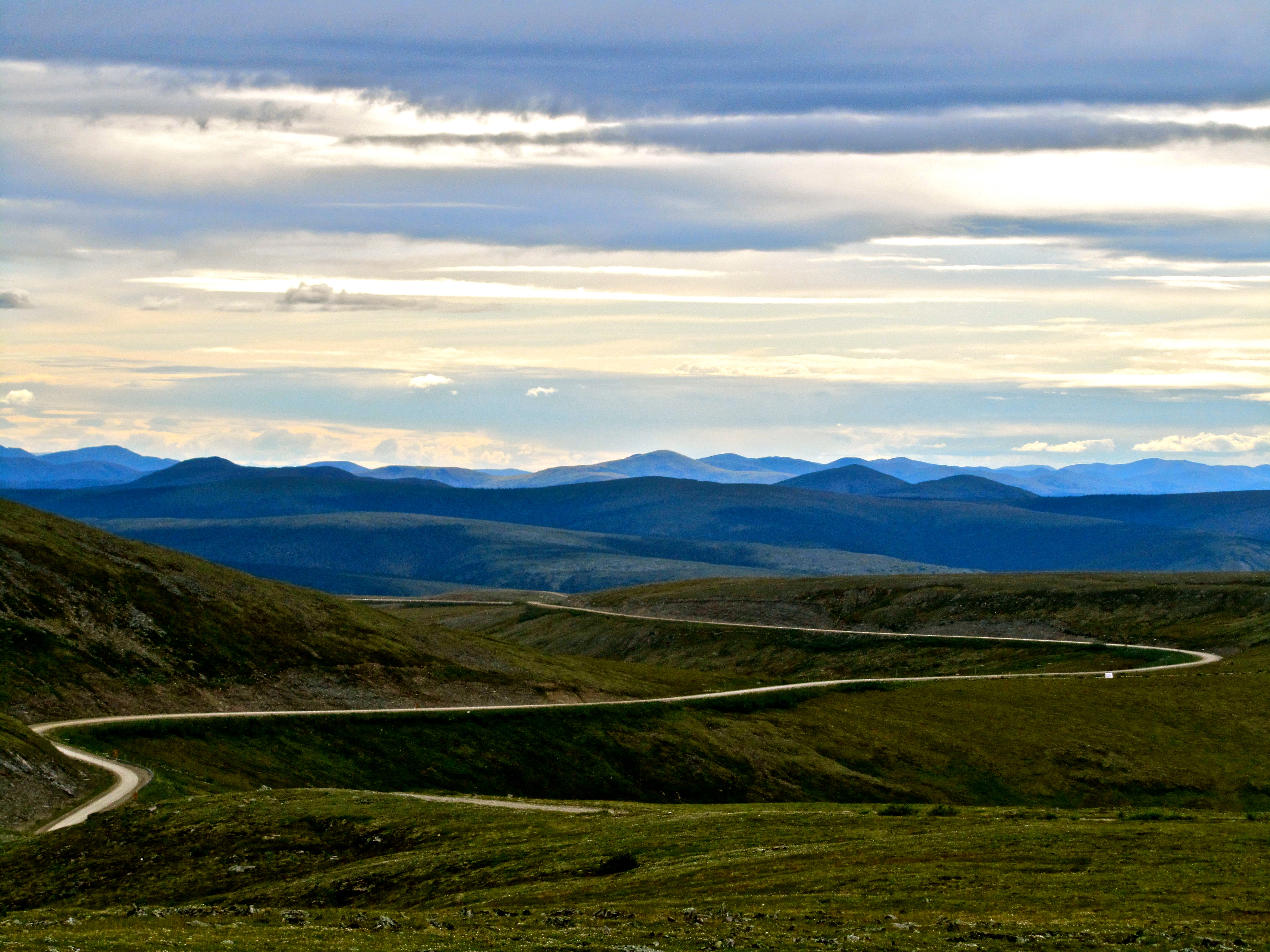 We rode down the steep track to the road, and as we began the long dirt ride back to town, I realized that the Arctic’s hold over me was fading away like a short Alaskan winter’s sun, and it was replaced by the gorgeous freedom of interior Alaska’s beckoning twisting roads. It came over me all at once – I was content, happy, rolling between the raindrops on a perfect dirt road above the treeline in Alaska.