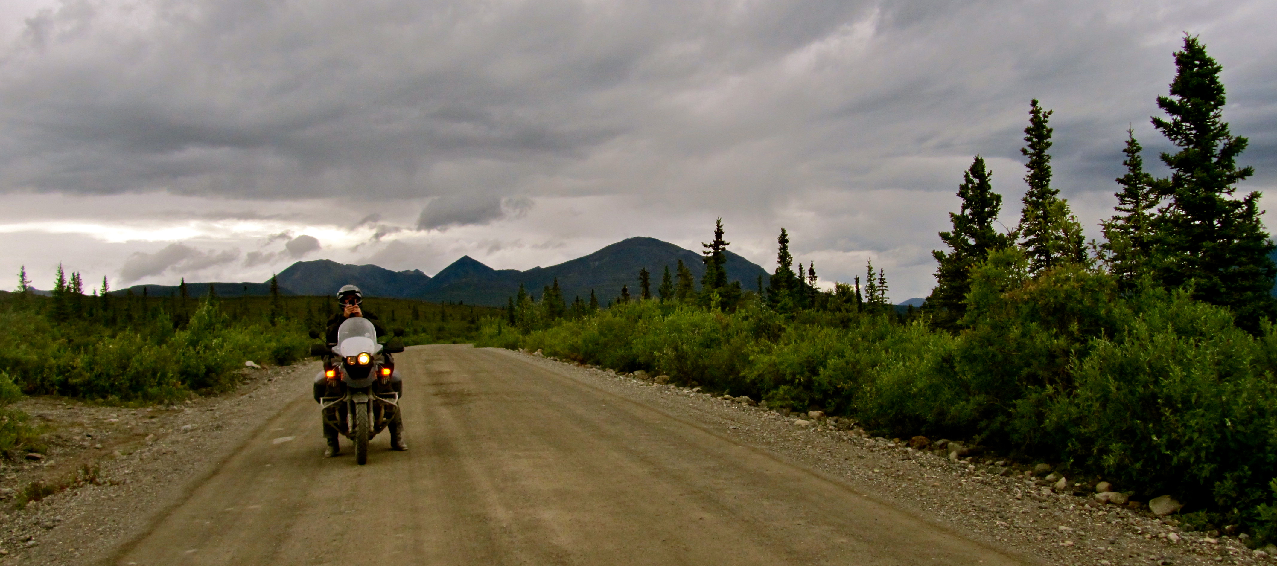 After the park, we made it to the Denali Highway.  Wow.  Ok, I know I’ve said this before (many times), but seriously, this time for reals – this was THE best riding I have ever had.  132 miles of dirt road through massive sweeping valleys, past glaciers and snow capped peaks, along an empty, carless road in almost absolute silence when our machines stilled.  Over the entire 5 hours it took, we saw about 10 cars / cycles.  And did I mention it was all over dirt?  It did rain for a bit, which made things a touch slippery, but it was a piece of cake on the GSs.  They were born for this.  As a result of all this, today is picture day followed by a story of danger and high stakes that our explorers pull through with nary a scratch…  Read on.