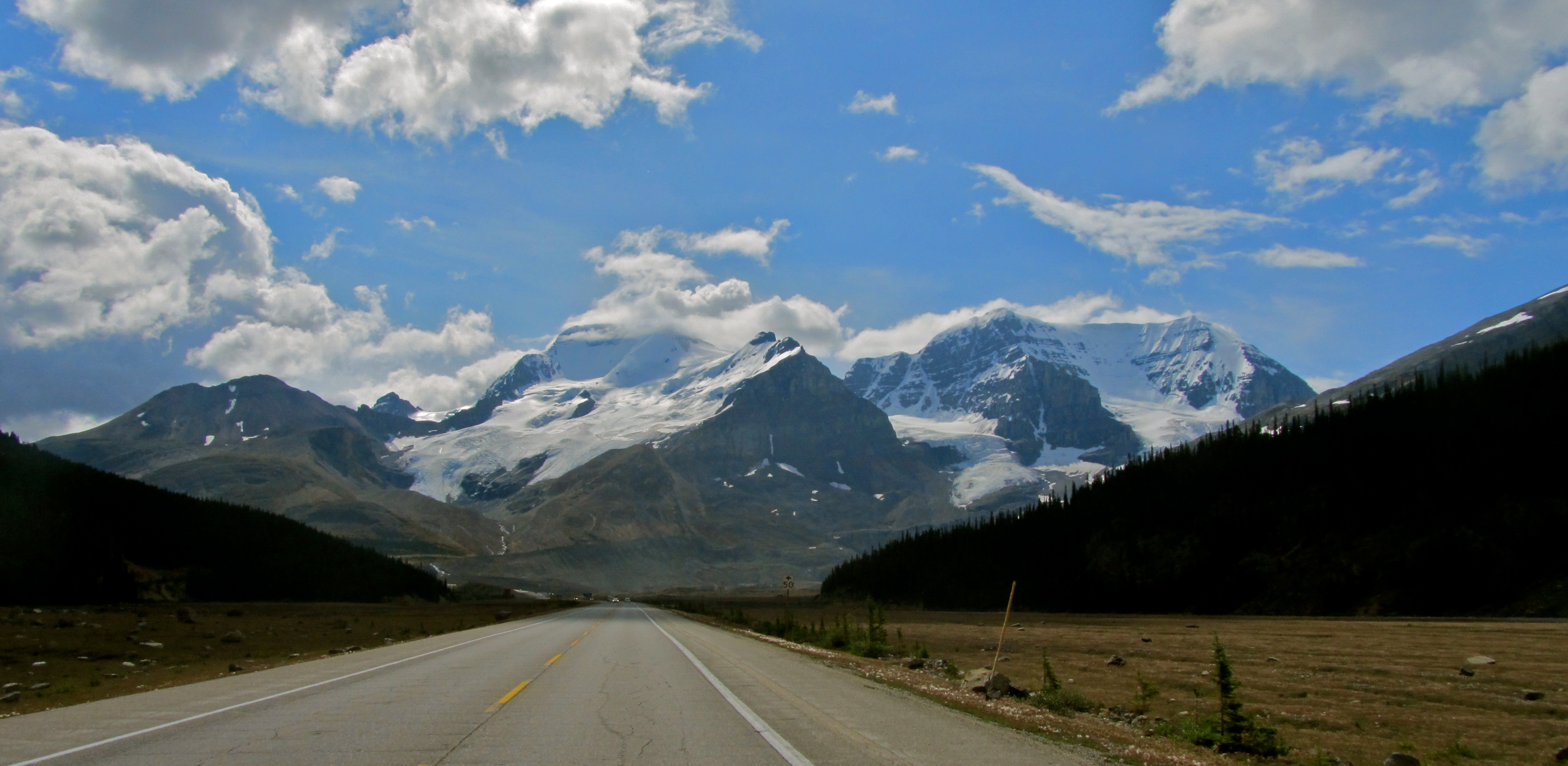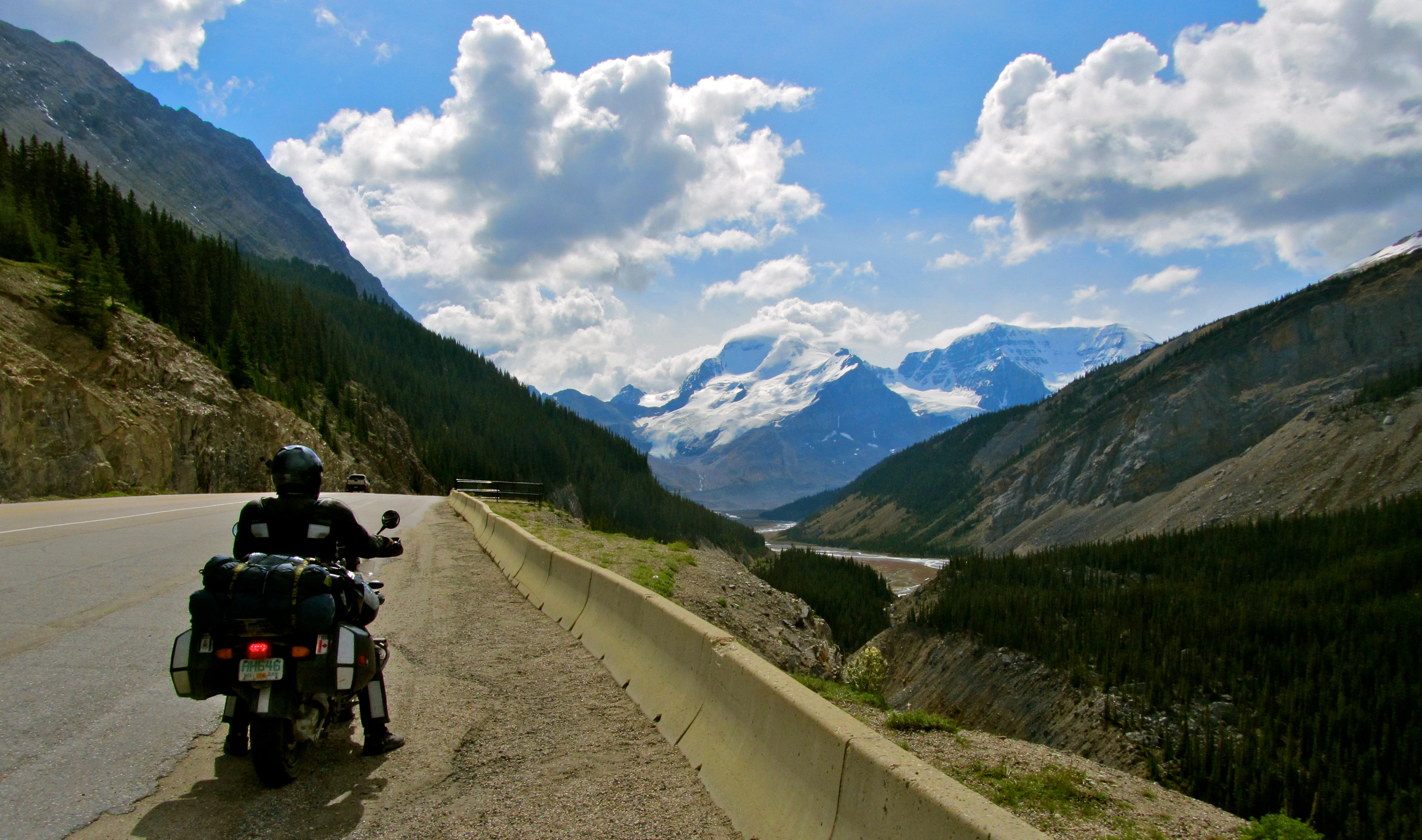 We awoke in Jasper feeling great about our mature decision making the night before and got a decently early start (for us). As we emerged from Jasper, we were instantly greeted with what was maybe the best riding of the trip. I’m sure you’re sick of hearing that, but seriously, the ride from Jasper to Lake Louise is absolutely spectacular as you roll through a valley cut by a blue river through the Canadian Rockies. Unfortunately, we didn’t get many photos – we are clearly in “go home” mode like a couple of pigeons loaded with important messages from the front, but we had to stop for a couple.