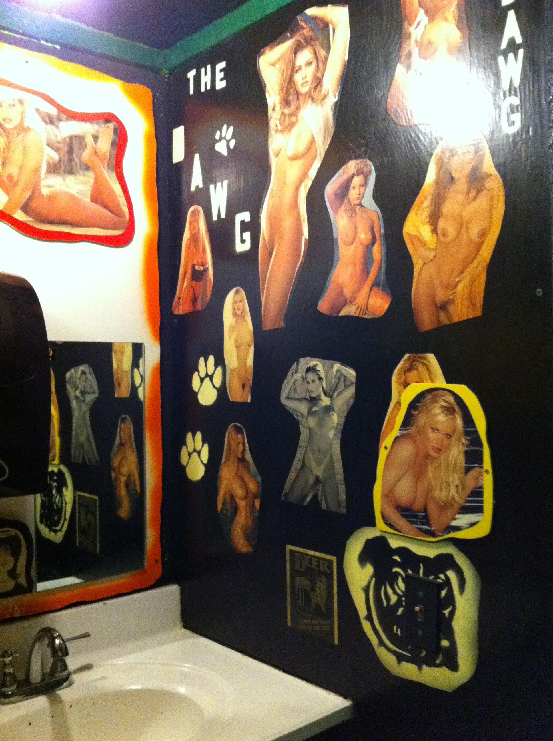 After wings and burgers at the next bar, we sat having some wine when we noticed something up on the wall, and it literally had my name on it. A HUGE jockstrap with “Eric” in gold glitter right down the middle. Yea! I finally found my junk helmet! I can now return to the Yukon and shower without fear! I admit, I’d need to take the waste in a little bit, but the rest of it would definitely work. They’re supposed to be tight, right? And the bartender, Dana, was nice enough to treat us to a photo too. Look closely – I mean, what are the odds?