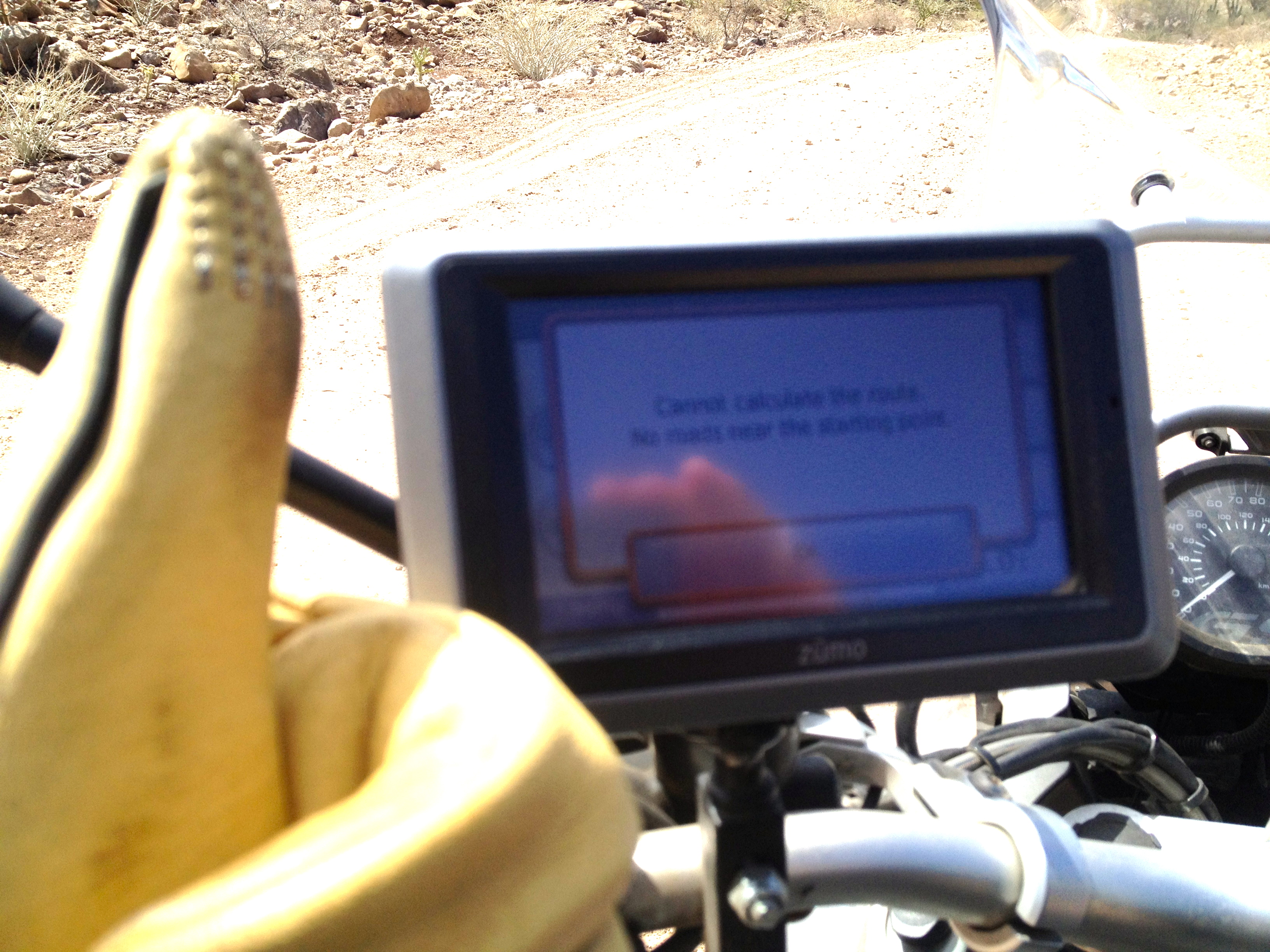 I'd like to complain about Garmin, but then, I do enjoy this: "Cannot calculate the route. No roads near the starting point." Yaous. I'm officially out there.
