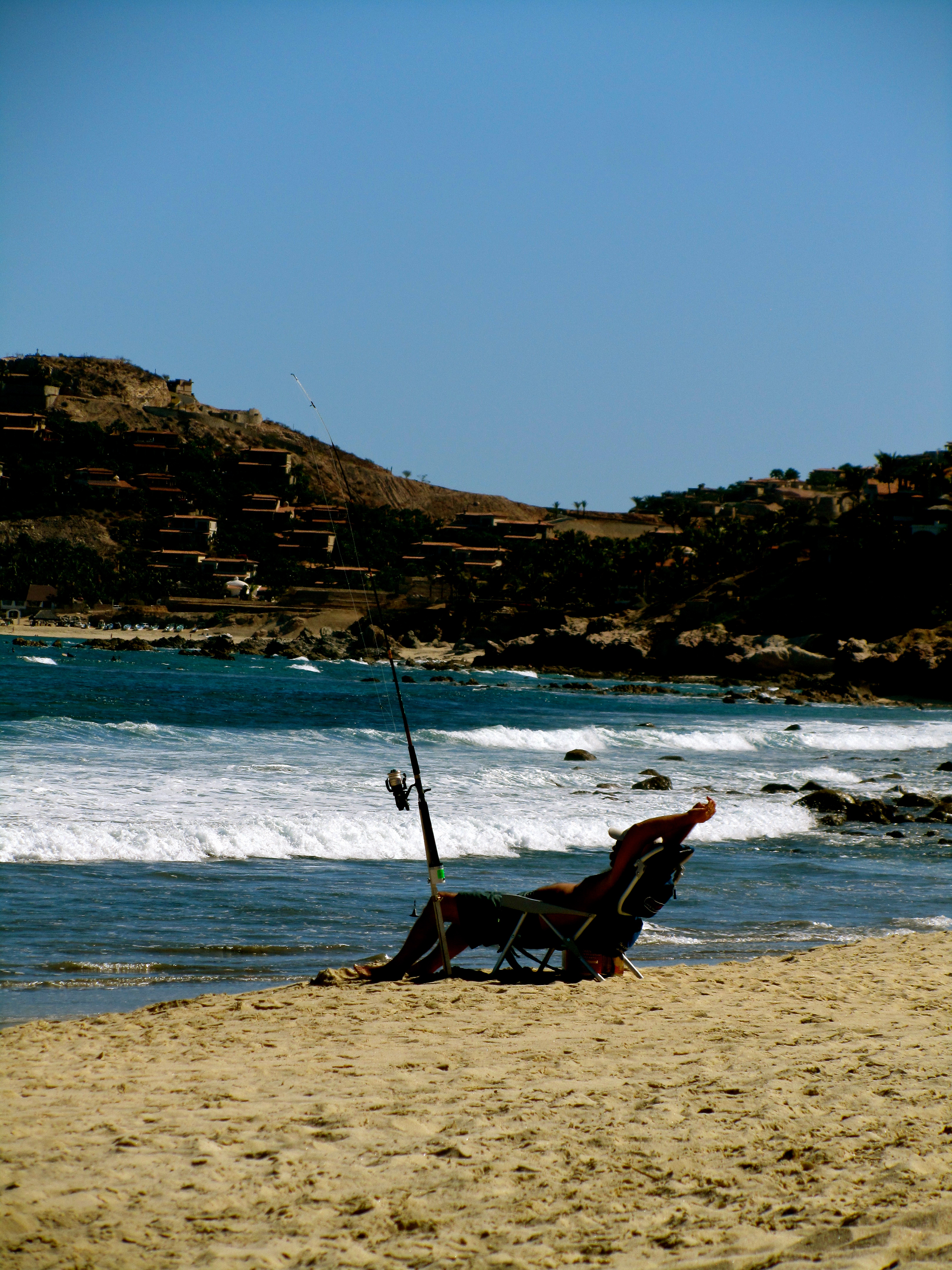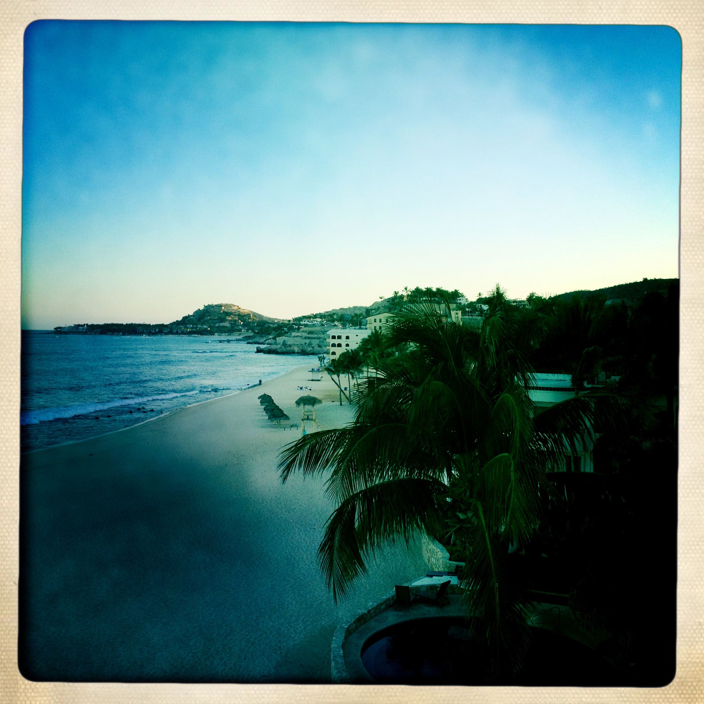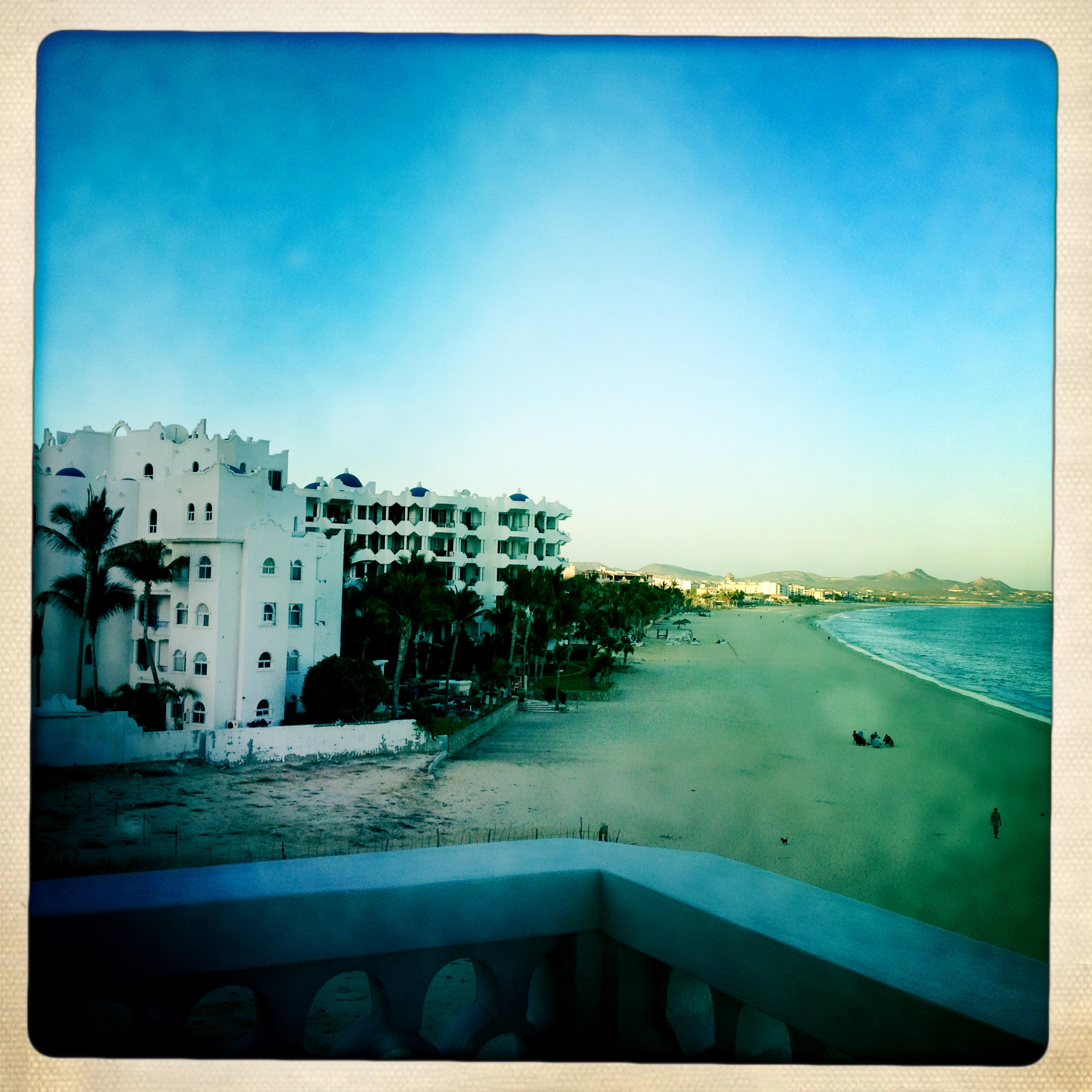 Negotiating the airport is a bit of a pain, but I finally find Ton, and we take the short ride to our hotel in San Juan los Cabos. Our hotel rocks! It’s only 4 floors with 4 rooms per floor, and we have the one on our floor (third) that opens up onto a huge balcony right on the ocean. It’s absolutely perfect. It’s all old wood and just plain cool – a far cry from some of the mega-resorts around the corner. Our beach is practically vacant, and the body surfing is great. Pretty sure I could make the Olympic Body Surfing team, but I just don’t get to train enough.