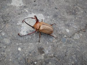 I should have put my phone next to this guy to show how HUGE he is.  Bigger than a golf ball – like as long as a deck of cards. I flipped him over – he was stuck on his back. He OWES me.