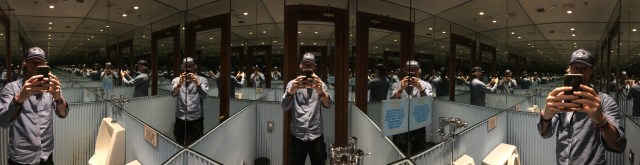 I could not help but take a photo in the bathroom. Such a fun effect. I entered an alternate universe through some space gap…