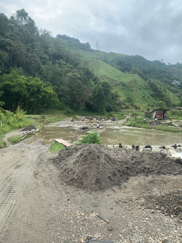 Now, I was not there on this journey, so I can’t tell you the full story. What I can tell you are the bits and pieces I heard over coffee and then dinner. His plan was to ride to the volcano – Nevado del Ruis. The ride turned out to be anything but easy. While I was getting sunburned poolside, and my biggest challenge was working the espresso machine, he took almost 3 hours to ride less than 30 miles along rocky terrain and river crossings under pouring rain and impenetrable fog while the temperature dropped to 40 degrees and at times the road turned into a river. He was forced to depends on his Italian to communicate to some (I’m pretty sure illegal) gold miners. Somehow they understood him enough to tell him, no gringo you don’t want to go that way. So he made it to the end and had to turn the bike around on a wet, sloppy hill, and this process included dropping the bike but dismounting gracefully (or so he says) and THEN found his phone dead, which is a challenge now that you cannot listen and charge, and he needed to listen because he could not see his phone! I’m pretty sure he used the force. He also, thankfully, found the volcano escape route. Whew. He wasn’t able to actually see the volcano through all the fog, but judging by his demeanor when he returned, we both had great days.